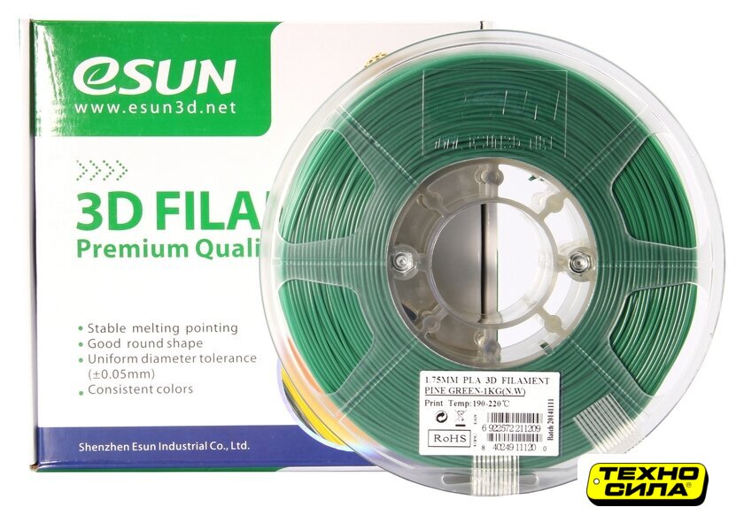 пластик, PLA, 1.75 мм, 330 м, 1000 г, черный