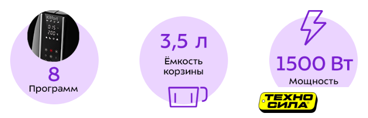 Комплект поставки | - аэрогриль;- корзина с ручкой;- поддон. |