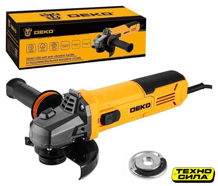 диаметр диска: 125 мм, 1200 Вт, 12000 об/мин холостого хода, питание: сеть, 2.02 кг