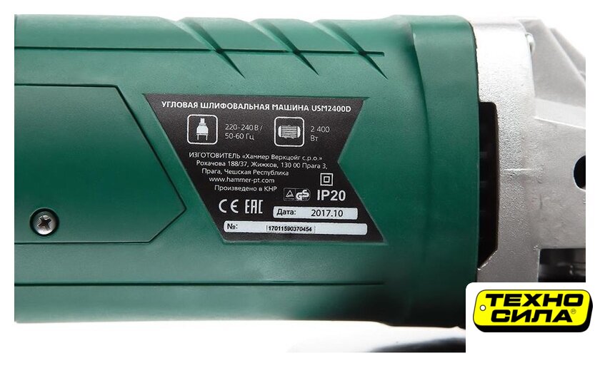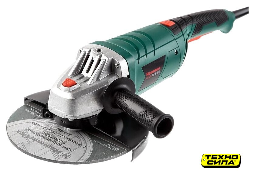 диаметр шлифкруга: 230 мм, 2600 Вт, 6500 об/мин холостого хода, 6.4 кг