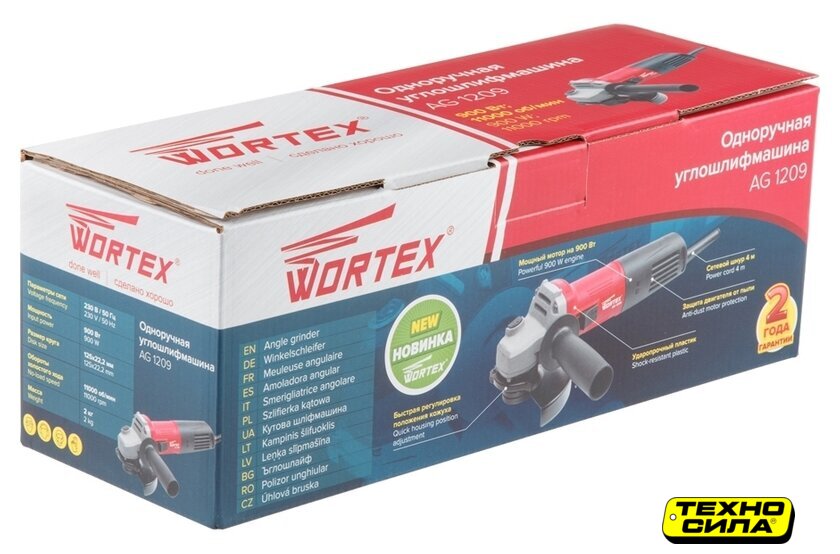 диаметр шлифкруга: 125 мм, 900 Вт, 12000 об/мин холостого хода, 1.88 кг