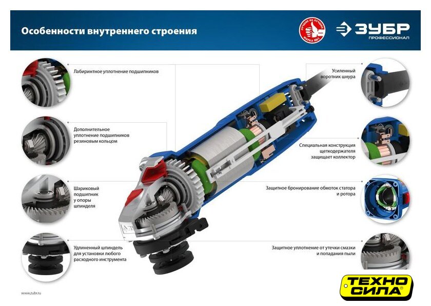 диаметр шлифкруга: 125 мм, 1050 Вт, 3000–11000 об/мин холостого хода, 1.8 кг