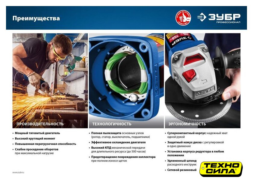 диаметр диска: 125 мм, 900 Вт, 11000 об/мин холостого хода, питание: сеть, 1.76 кг