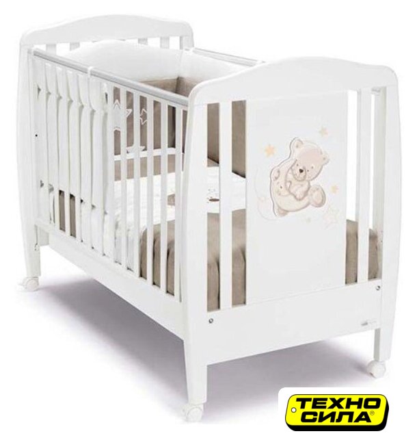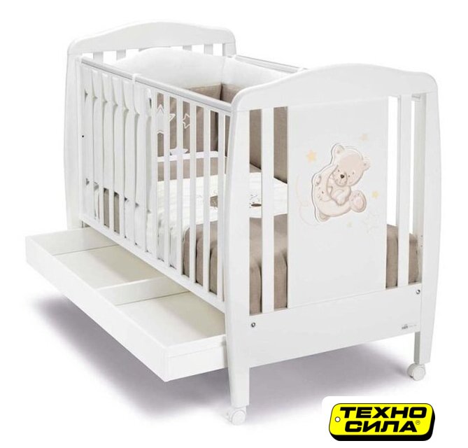 люлька, металл/ткань, 1 уровень дна, механизм качания: маятник, опускающаяся передняя стенка