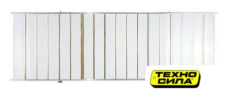 лицевой (фронтальный) экран, универсальный, раздвижной, прямой, ПВХ, профиль: алюминий, с регулировкой высоты, цвет: белый/золотистый