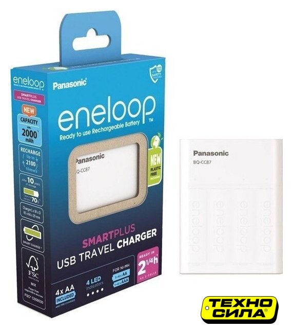 аккумулятор, 8 шт., типоразмер AA/AAA, NiMH, ресурс 2100 циклов, срок хранения 5 лет