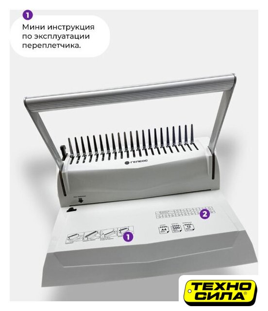 пружинный механический, пластиковая пружина, толщина переплета: 450 листов, одновременная перфорация 12 листов, шаг перфорации: 9:16, металлический корпус