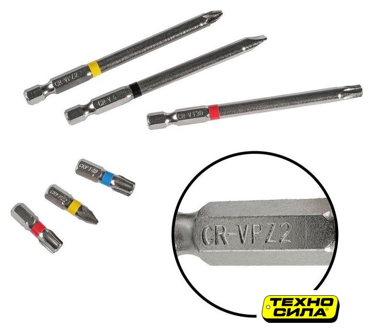 Размер биты | H4, H5, H6, PH1, PH2, PH3, PZ1, PZ2, PZ3, SL4, SL6, T10, T15, T20, T25, T27, T30, T40, TH10, TH15, TH20, TH25, TH30, TH40 |