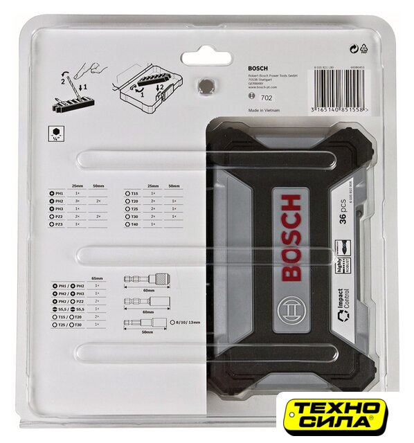 Комплектация | Биты:1 x PH1 25mm3 x PH2 25mm, 2 x PH2 50mm1 x PH3 25mm2 x PZ2 25mm, 2 x PZ2 50mm1 x PZ3 25mm1 x T15 25mm2 x T20 25mm, 1 x T20 50mm2 x T25 25mm, 1 x T25 50mm2 x T30 25mm, 1 x T30 50mm1 x T40 25mm1 x PH1 / PH21 x PH2 / PH32 x PH2 / PZ21 x S5,5 / S5,52 x Torx T15 / T201 x Torx T25 / T30 Универсальный держатель MagneticГоловки: 8,0/10,0/13,0 ммPH2-PZ2 (2 шт.)Длина, мм: 60 / 60 / 50 / 50 / 50 / 50 / 25 / 25 / 25 |