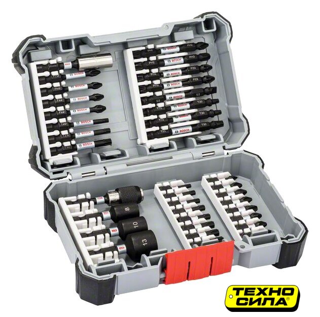 39 шт, рабочий размер биты: PH1, PH2, PZ1, PZ2, PZ3, TX10, TX15, TX20, TX25, TX30