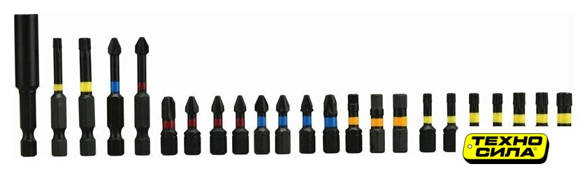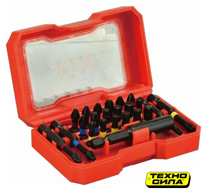 71 шт, рабочий размер биты: H4, H5, H6, PH1, PH2, PH3, PZ1, PZ2, PZ3, SL4, SL6, T10, T15, T20, T25, T27, T30, T40, TH10, TH15, TH20, TH25, TH30, TH40