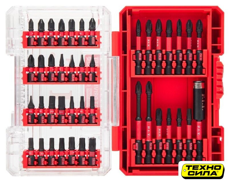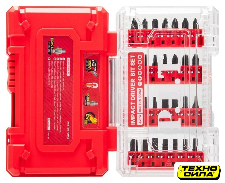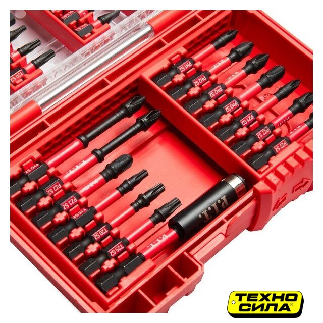 Комплектация | Биты ударные 25 мм (28 шт.), биты ударные 50 мм (11 шт.), биты ударные 75 мм (2 шт.), держатель бит, кейс |