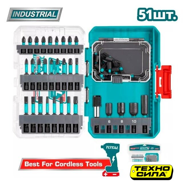 | Комплектация | - Биты 25 мм (PH1 / PH2 / PH2 / PH2 / PH3 / PZ1 / PZ2 / PZ2 / PZ2 / PZ3 / SL4 / SL5 / SL5 / SL5.5 / SL6 / T10 / T15 / T20 / T20 / T25 / T25 / T27 / T30 / T35 / T40 / H3 / H4 / H5 / H6) - 29 шт.- Биты 50 мм (PH1 / PH2 / PH2 / PH3 / PZ1 / PZ2 / PZ2 / PZ3 / SL4 / SL5 / SL5 / SL6 / T15 / T20 / T25 / T27 / T30 - 17 шт.- Торцевые насадки 48 мм (6, 8, 10 мм) - 3 шт.- Держатель бит - 2 шт.- Кейс.- Блистер. |