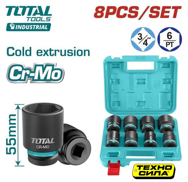 Комплектация | - Торцевая головка 3/4'' (26, 27, 29, 30, 32, 35, 36, 38 мм) - 8 шт.- Пластиковый кейс - 1 шт. |