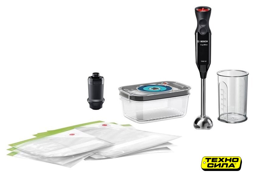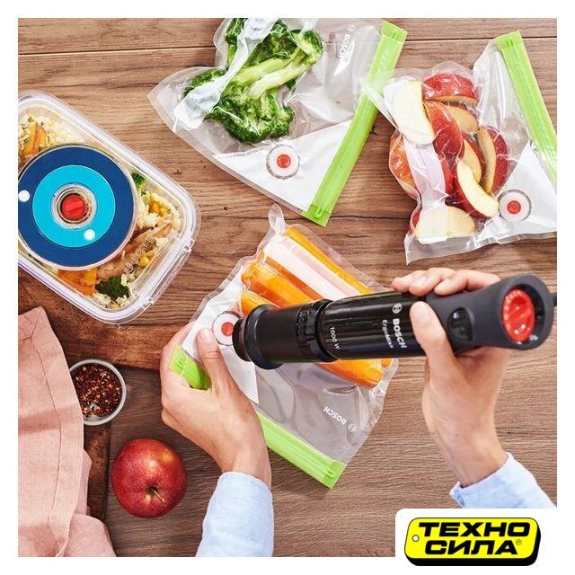 Комплектация | вакуумный насос, вакуумный контейнер (1 л) и 6 вакуумных пакетов (3х 1,2 л и 3х 3,8 л) |