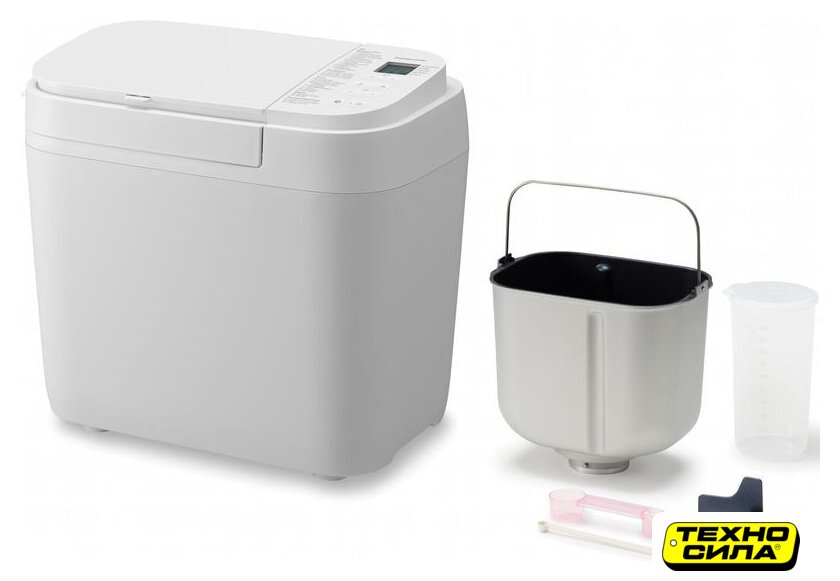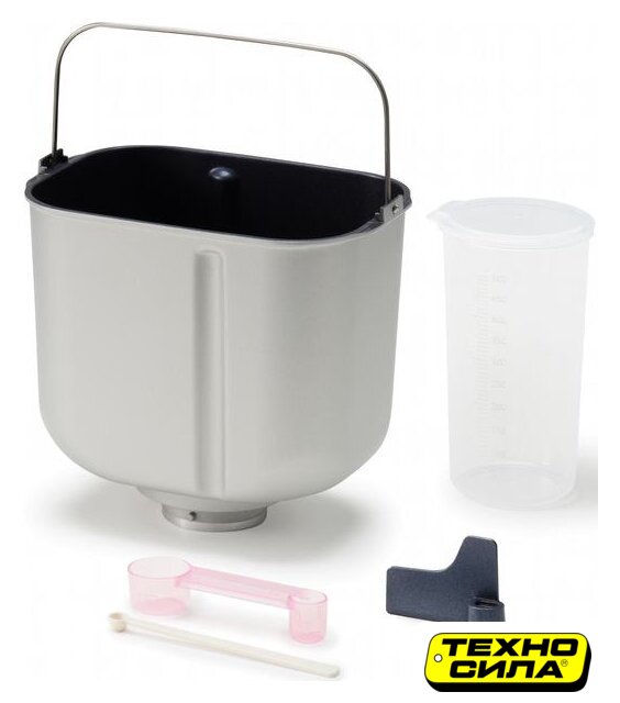 Комплект поставки | - хлебопечь;- чаша для выпечки;- лопатка для замеса теста;- мерная ложка 2 шт;- мерный стакан. |