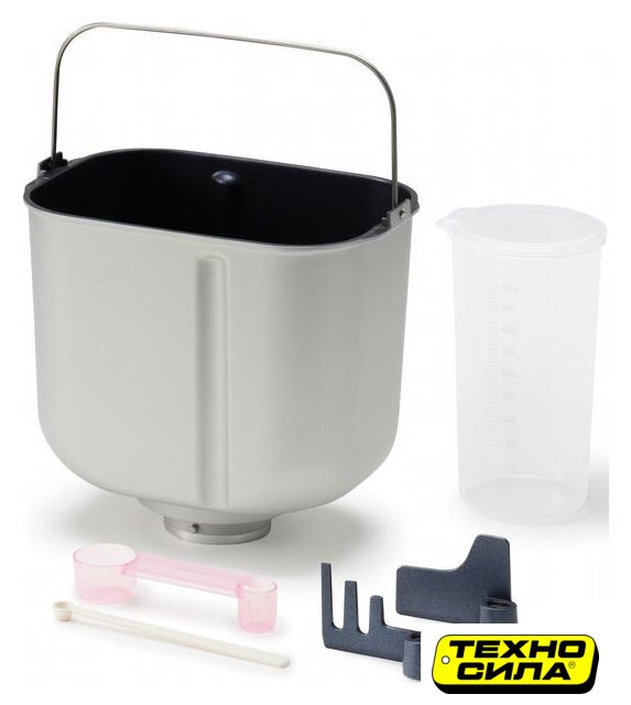Комплект поставки | - хлебопечь;- чаша для выпечки;- лопатки для замеса теста;- мерная ложка 2 шт;- мерный стакан. |