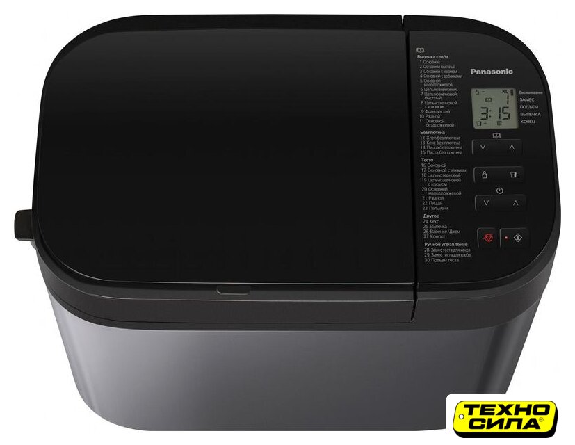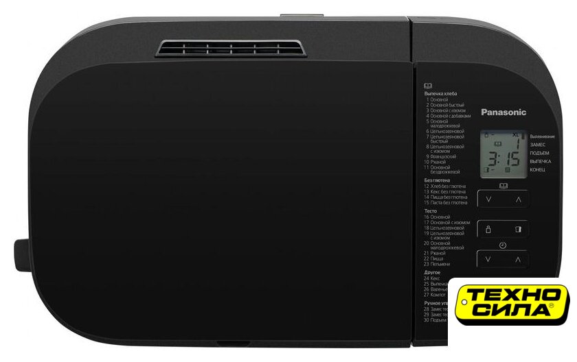 Перечень режимов работы | Авто меню (Хлеб):1. Основной2. Основной быстрый3. Основной с изюмом4. Основной с добавками5. Основной малодрожжевой6. Цельнозерновой7. Цельнозерновой быстрый8. Цельнозерновой с изюмом9. Французский10. Ржаной11. Основной бездрожжевойАвто меню (Без глютена):12. Хлеб без глютена13. Кекс без глютена14. Пицца без глютена15. Паста без глютенаАвто меню (Тесто):16. Основной17. Основной с изюмом18. Цельнозерновой19. Цельнозерновой с изюмом20. Основной малодрожжевой21. Ржаной22. Пицца23. ПельмениАвто меню (Другое):24. Кекс25. Выпечка26. Варенье/Джем27. Фрукты в сиропеАвто меню (Ручное управление):28. Замес теста для кекса29. Замес теста для хлеба30. Подъем теста |