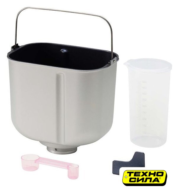 Комплект поставки | - хлебопечь с чашей;- лопатка для замеса теста;- мерная ложка;- мерный стакан. |