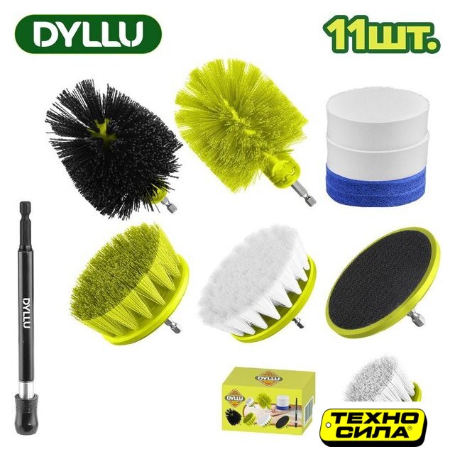 набор щеток для электроинструмента, 7 шт, чашечная, ворс: прямая, диаметр 89 мм/100 мм, посадочный диаметр HEX 1/4