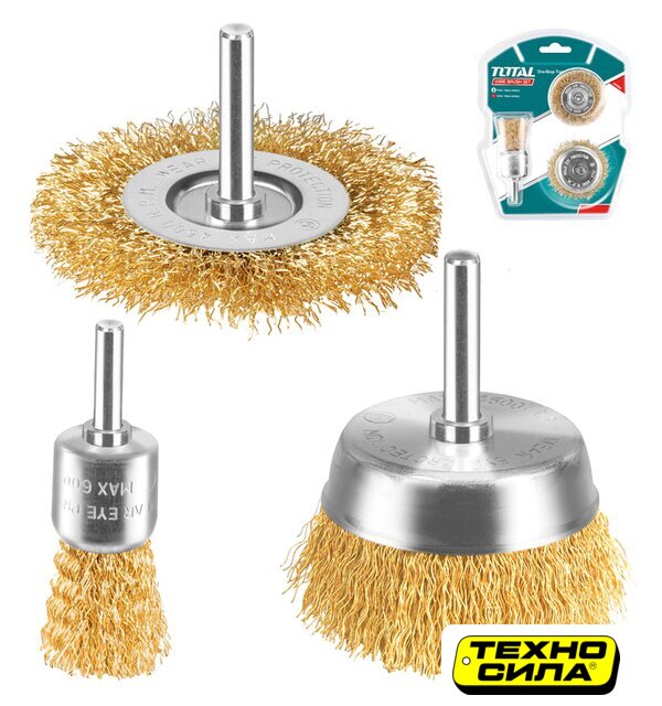 щетка для электроинструмента, 1 шт, дисковая, ворс: гофра (нейлон), обрабатываемый материал: дерево/металл, диаметр 100 мм, посадочный диаметр 6 мм