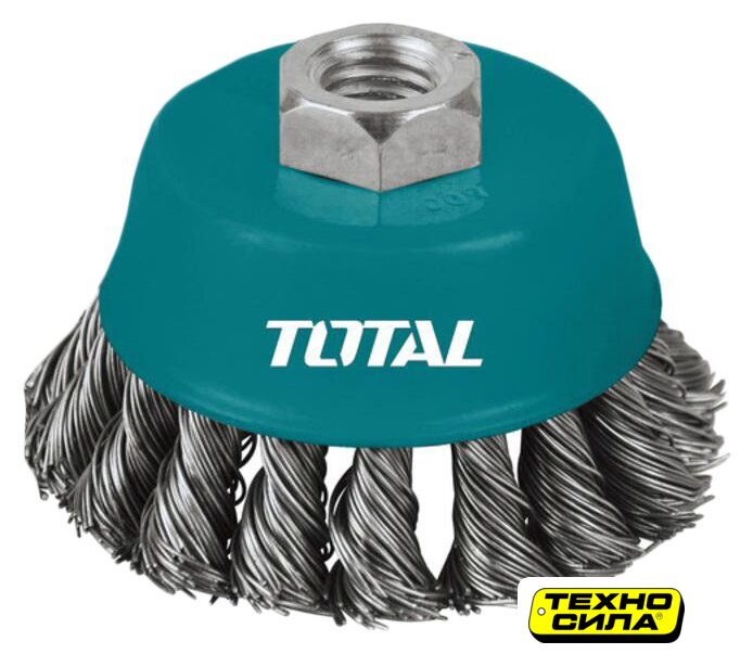 щетка для электроинструмента, 1 шт, чашечная, ворс: гофра (сталь), обрабатываемый материал: дерево/металл, диаметр 150 мм, резьба M14