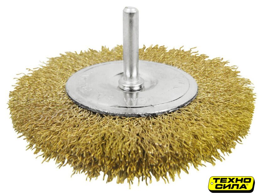 щетка для электроинструмента, 1 шт, дисковая, ворс: гофра (металл), обрабатываемый материал: дерево/металл, диаметр 75 мм, посадочный диаметр 6 мм