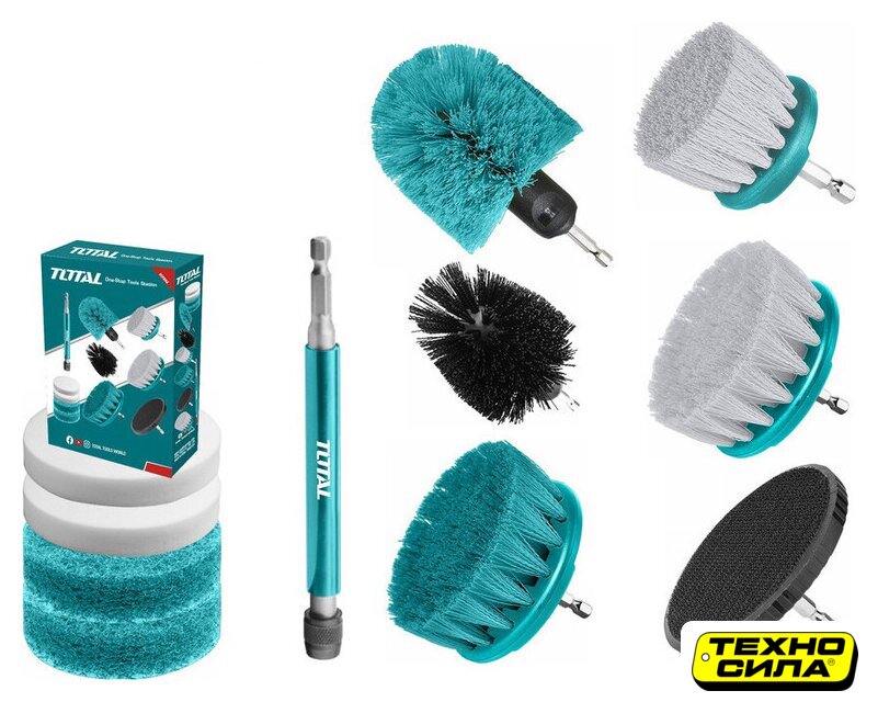 набор щеток для электроинструмента, 7 шт, чашечная, ворс: прямая, диаметр 89 мм/100 мм, посадочный диаметр HEX 1/4