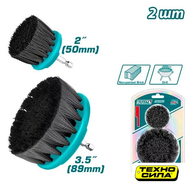 набор щеток для электроинструмента, 2 шт, чашечная, ворс: прямая, диаметр 50 мм/89 мм, посадочный диаметр HEX 1/4