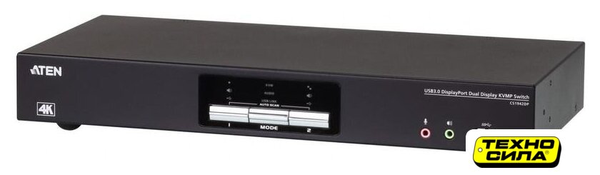 KVM переключатель DisplayPort/USB 3.2 Gen1 Type-A/3.5 мм jack/COM (RS-232), черный