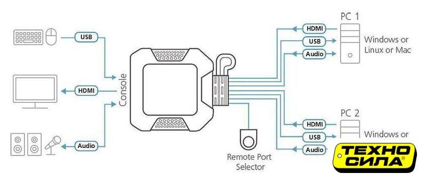 переключатель USB 2.0 Type-A/HDMI/3.5 мм jack , черный