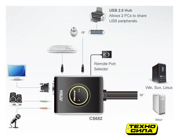 Длина кабеля | 1.2 м (2х KVM; 1.8 м - переключатель удаленного выбора) |