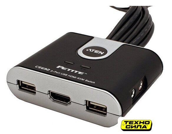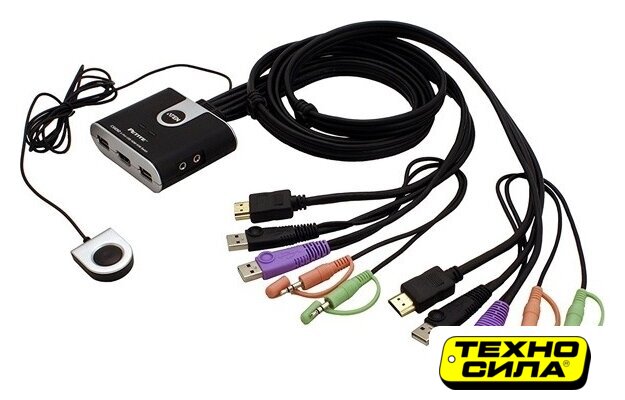 KVM переключатель USB 2.0 Type-A/HDMI/3.5 мм jack, черный, длина 1.2 м