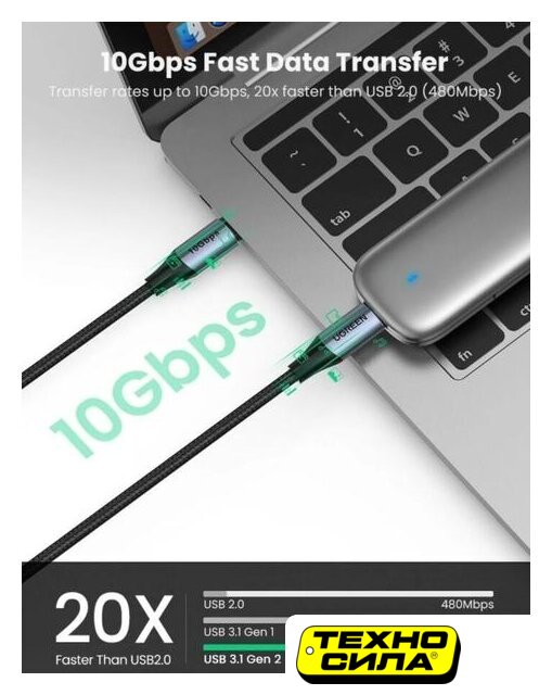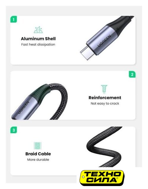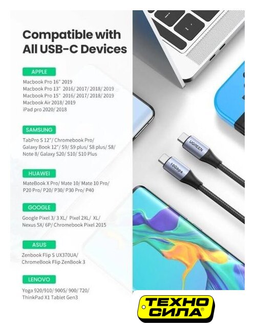 кабель USB 2.0 Type-C, белый, длина 1 м