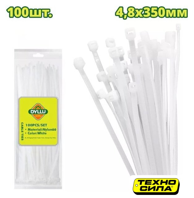 100 в упаковке, 300 x 4.8 мм, нейлон, белый, внутреннее зубчатое зацепление
