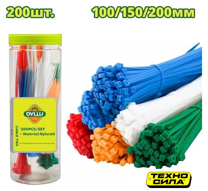 100 в упаковке, 200 x 3.6 мм, нейлон, черный