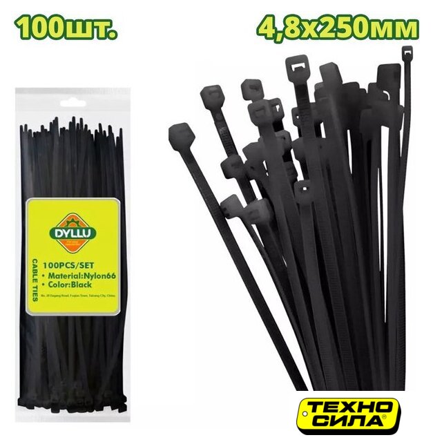 100 в упаковке, 300 x 4.8 мм, нейлон, черный, внутреннее зубчатое зацепление