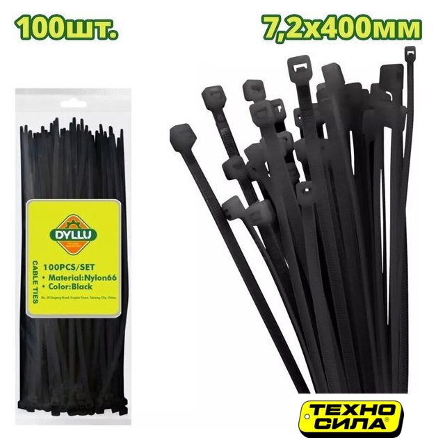 100 в упаковке, 400 x 7.6 мм, нейлон, черный, внутреннее зубчатое зацепление