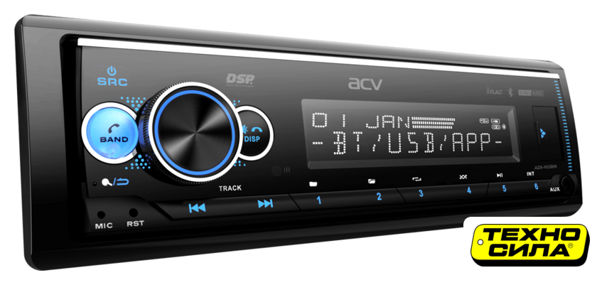 1DIN, USB-проигрыватель, USB, Bluetooth, усилитель 8x65 Вт, экран монохромный, пульт