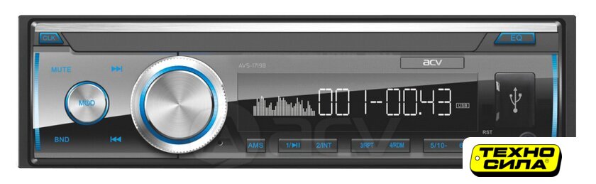 1DIN, USB-проигрыватель, USB, карты памяти, Bluetooth, усилитель 4x45 Вт, экран монохромный, пульт