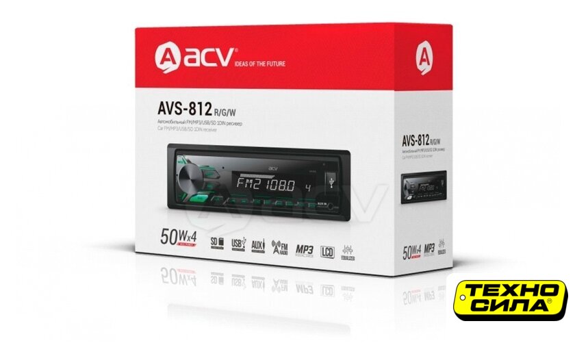 1DIN, USB-проигрыватель, USB, карты памяти, усилитель 4x50 Вт, экран монохромный