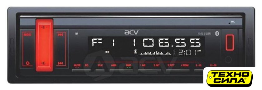 1DIN, USB-проигрыватель, USB, карты памяти, Bluetooth, усилитель 4x50 Вт, экран монохромный