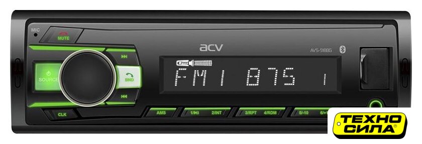 1DIN, USB-проигрыватель, USB, карты памяти, Bluetooth, усилитель 4x50 Вт, экран монохромный