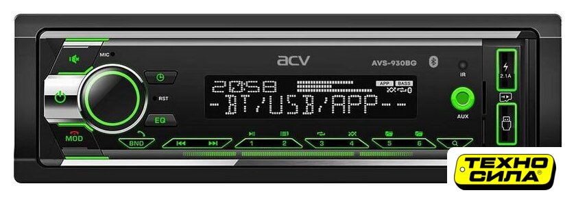 1DIN, USB-проигрыватель, USB, Bluetooth, усилитель 4x55 Вт, экран монохромный, пульт