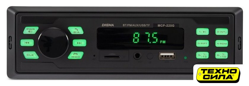 1DIN, USB-проигрыватель, USB, карты памяти, Bluetooth, усилитель 4x45 Вт, экран монохромный