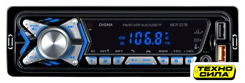 1DIN, USB-проигрыватель, USB, карты памяти, Bluetooth, усилитель 4x45 Вт, экран монохромный, пульт