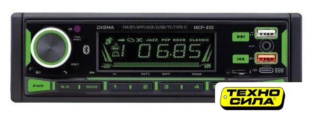 1DIN, USB-проигрыватель, USB, карты памяти, усилитель 4x50 Вт, экран монохромный