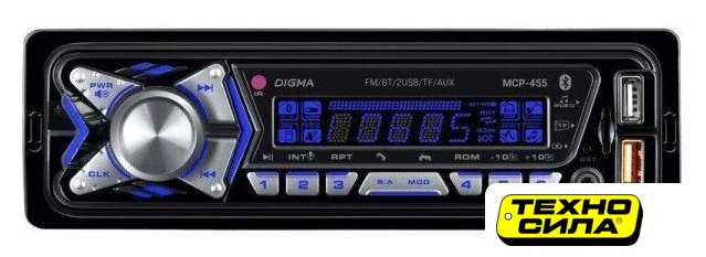1DIN, USB-проигрыватель, USB, карты памяти, Bluetooth, экран монохромный, пульт