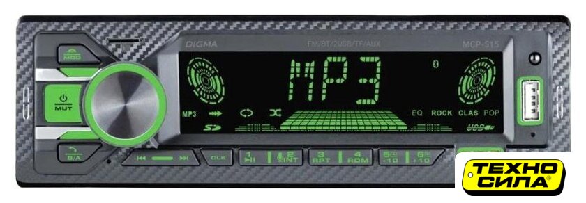 1DIN, USB-проигрыватель, USB, карты памяти, Bluetooth, усилитель 4x55 Вт, экран монохромный, пульт