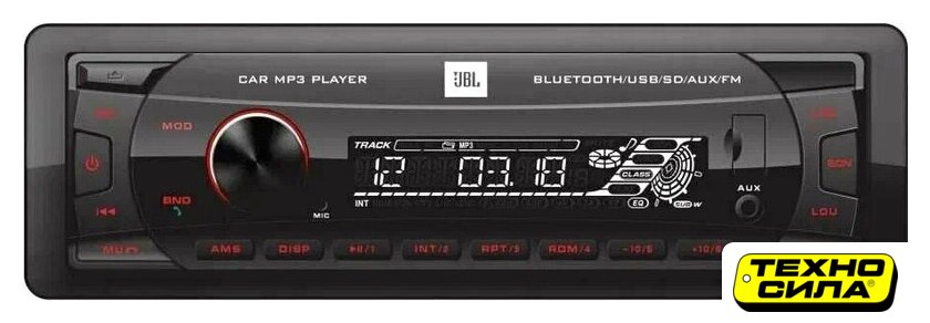 1DIN, USB-проигрыватель, USB, Bluetooth, усилитель 4x55 Вт, экран монохромный, пульт